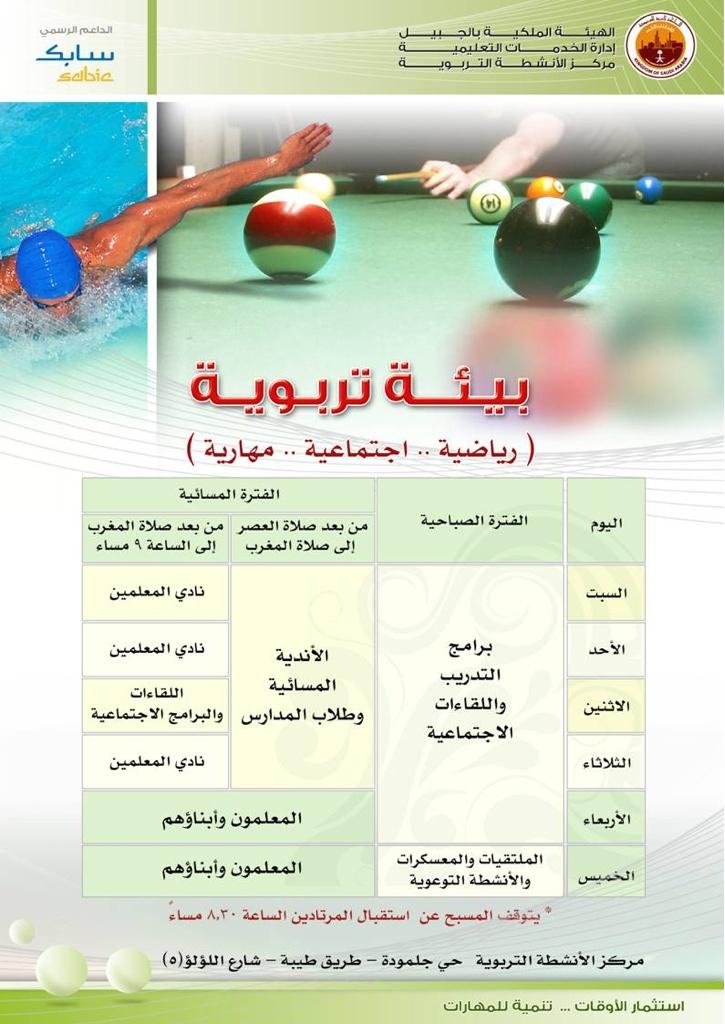 جدول العمل بمركز الأنشطة - التربوية ( نادي المعلمين بالجبيل )