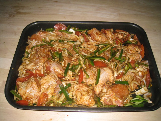 - المكونات : دجاجة مقطعة - ثلاث حبات من البطاطس متوسطة الحجم - كوب من اللبن ال**ادي - حبتان من الفلفل الحلو الملوّن - رأس من الثوم - كوب من الك**رة المفرومة ناعماً - ملعقتان من البهارات الهندية - ملعقة صغيرة من الكاري - فلفل أخضر حار (حسب الرغبة) - فلفل أسود - ملح - ملعقة من الزيت النباتي .